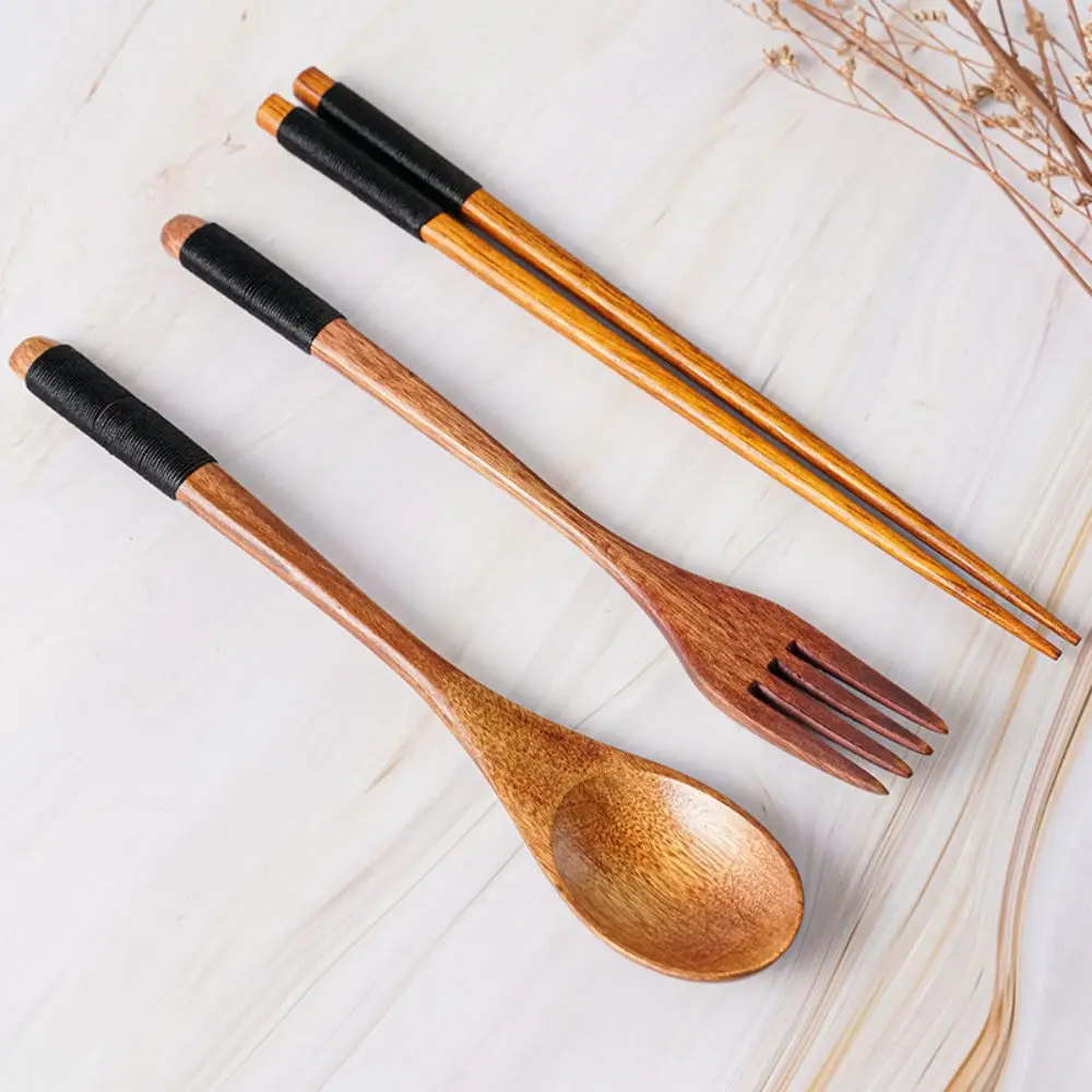 3pcs Creative Wooden Cutlery Spoon Fork Chopsticks Set Spoon Fork Portable Cutlery 3 Piece Combination Set