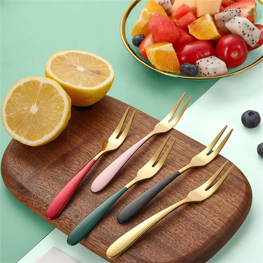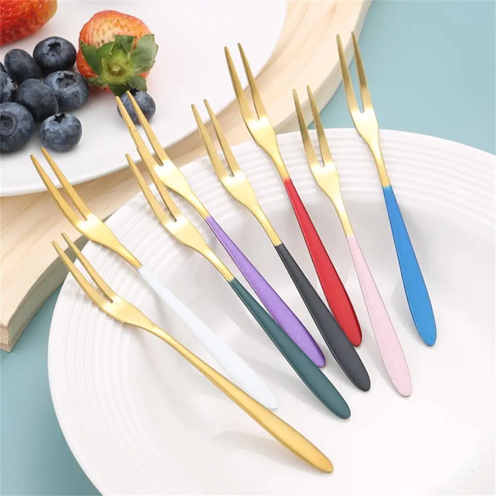 1, Stainless steel colorful fruit fork, one-piece stamping molding - streamline comfortable handle - and tines blunt grinding