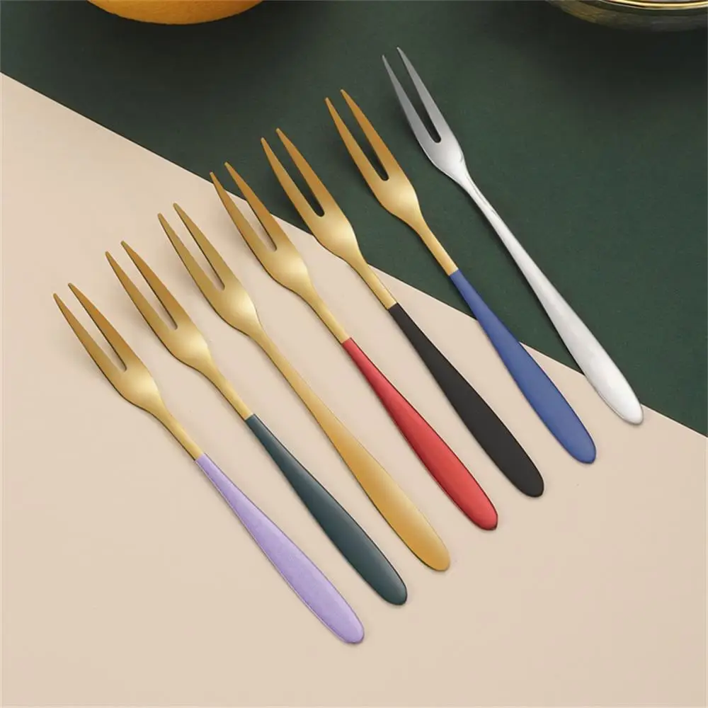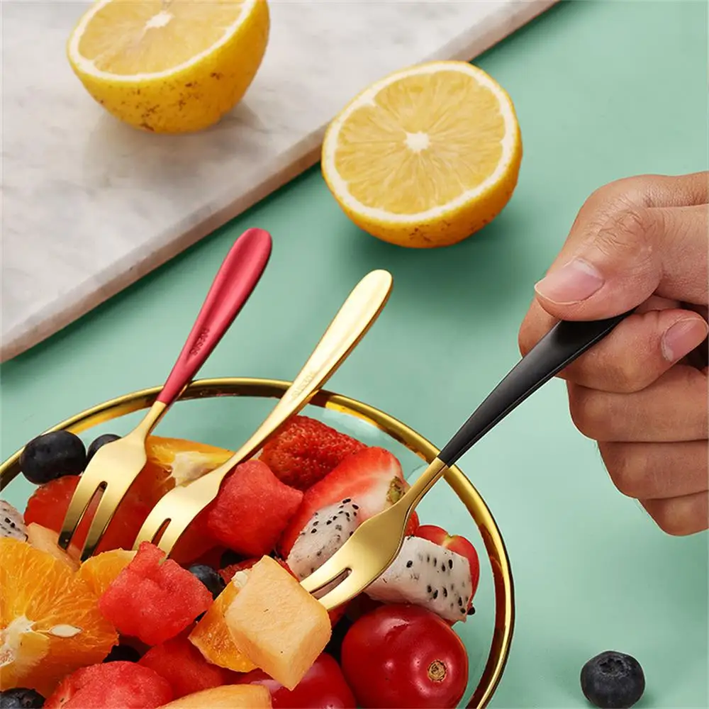 7pcs 304 Stainless Steel Fruit Forks Dessert Cake Forks Salad Forks Party Kitchen Tableware