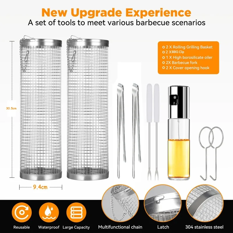 Barbecue Cages Barbecue Grill Grate Set BBQ Rolling Grilling Basket Round BBQ Campfire Grill Grid Rolling Grill Basket