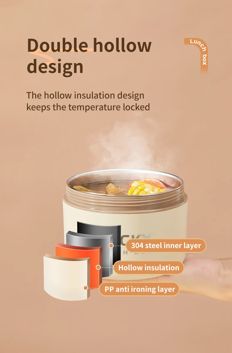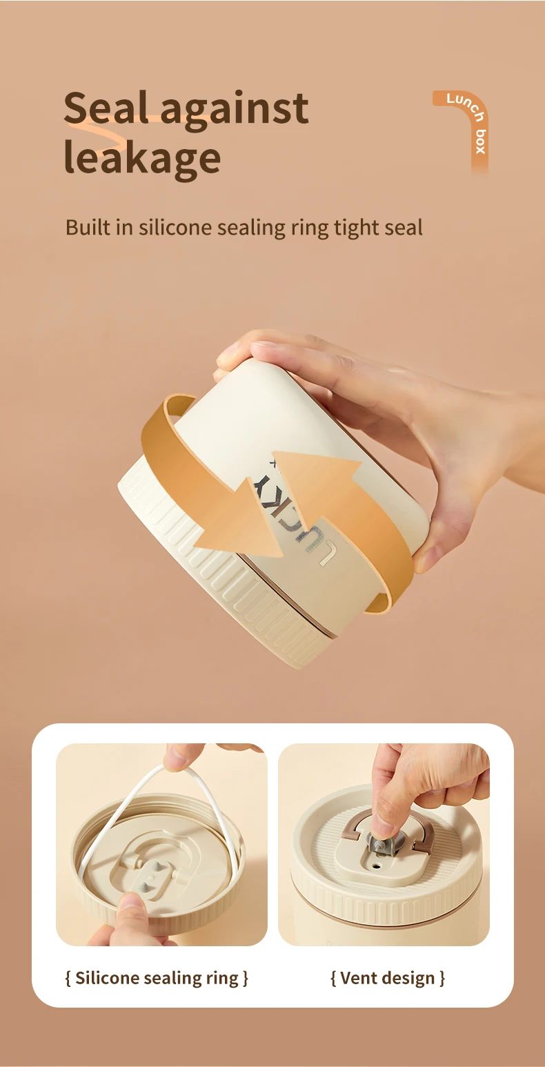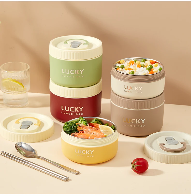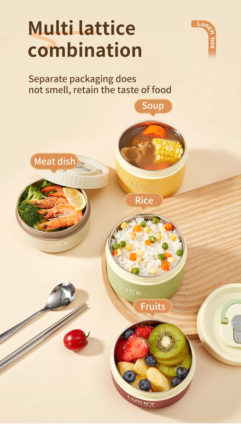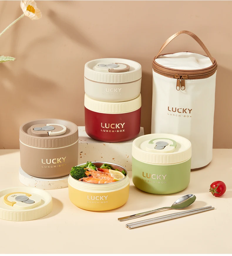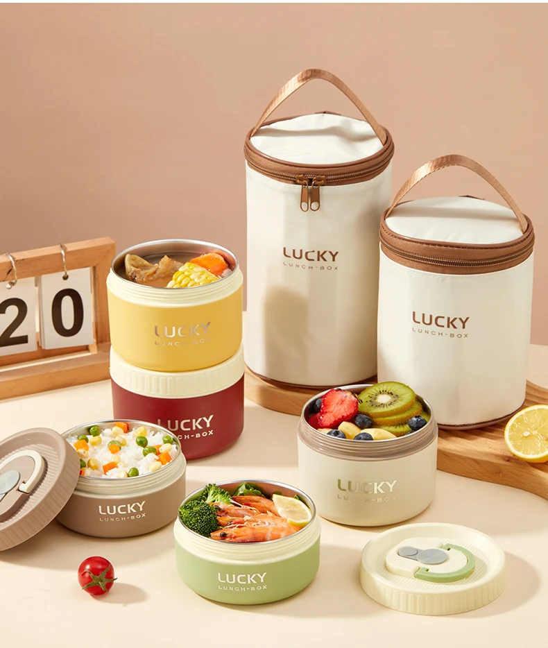 WORTHBUY 304 Stainless Steel Thermal Bento Lunch Box With Cutlery&Bag Microwave Sealed Leak-proof Insulated Food Container